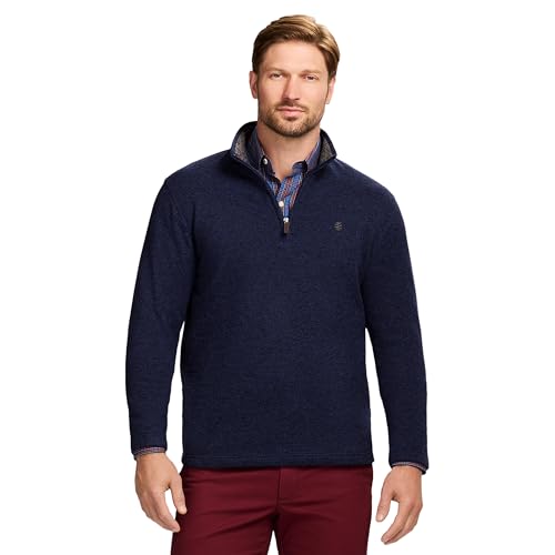 IZOD Men's Thermosoft Quarter Zip Sweater Fleece Pullover, Blazer Navy Blue, Large