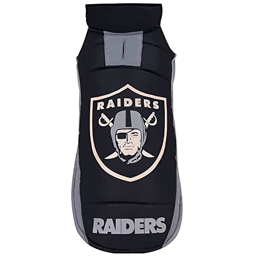 NFL Las Vegas Raiders Puffer Vest for Dogs & Cats, Size Large. Warm, Cozy, and Waterproof Dog Coat, for Small and Large Dogs/Cats. Best NFL Licensed PET Warming Sports Jacket