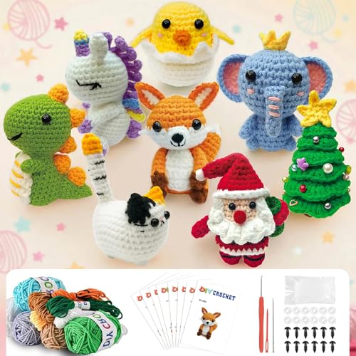 ArkChroms 8PCS Crochet Kit for Beginners, 2026 Christmas Gift Knitting Kit with Step-by-Step Video Tutorials, Beginner Crochet Kit Gifts for Kids, Adults