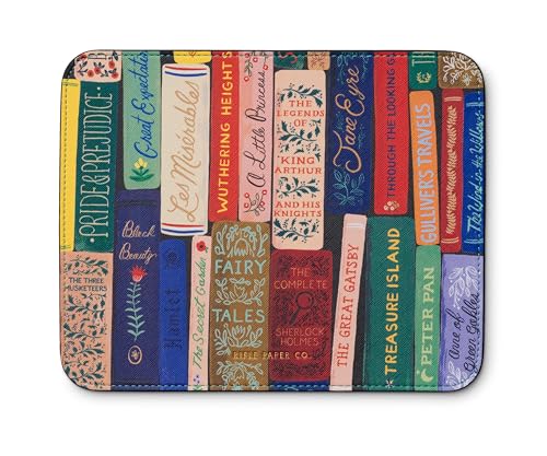 RIFLE PAPER CO. Bookshelf Patterned Mouse Pad | Add a Touch of Charm to Your Workspace | Smooth Polyurethane Finish Allows Mouse to Glide, with Non-Slip Rubber Backing, Bookshelf