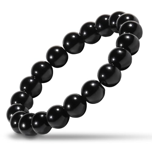 Natural Stretch Jade Bracelet for Women Men 10MM Bead 6.7 Inch to 7.5 inch Healing Crystal Energy Gemstone Bracelet for Women Men Present (black)