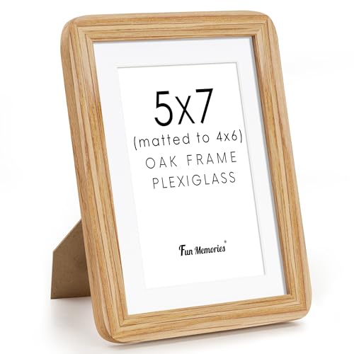 5x7 Picture Frame, 5 by 7 Photo Frames for Wall & Tabletop Display, Solid Oak Wood Frames with Plexiglass, 5x7 Frame Matted to 4x6, Light Wood 5 x 7 Gallery Wall Frame set, Natural Oak Color, 1 Pack