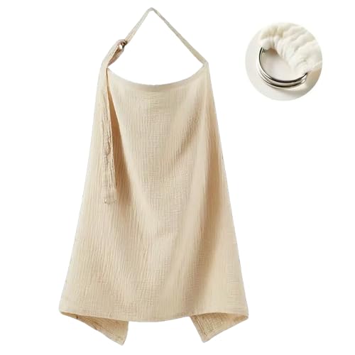 Neblueum Muslin Nursing Cover for Breastfeeding Moms - 100% Cotton Lightweight & Breathable Privacy Shawl with Adjustable Rigid Hoop | Multi-use Apron (Summer Wheat)