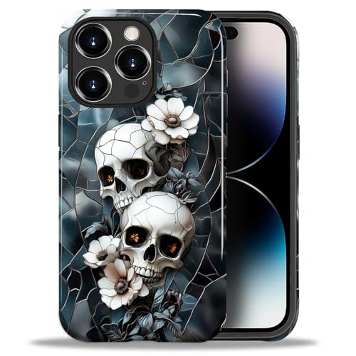 ZHEGAILIAN Case for iPhone 14 Pro Max,Shockproof Hard Shell + Soft Silicone 2 in 1 Hybrid,Shockproof Bumper Drop Protective - Skeleton Wild Flowers Dark