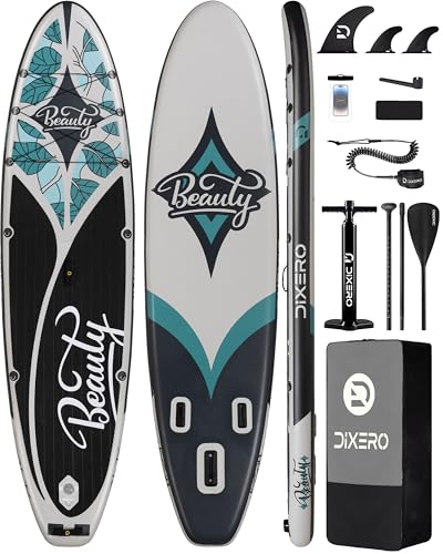 Dixero 11’*33”*6”Inflatable Stand Up Paddle Board for All Skill Levels with Premium SUP Paddleboard Accessories, Adjustable Floating Paddle, Safety Leash, Backpack and Pump