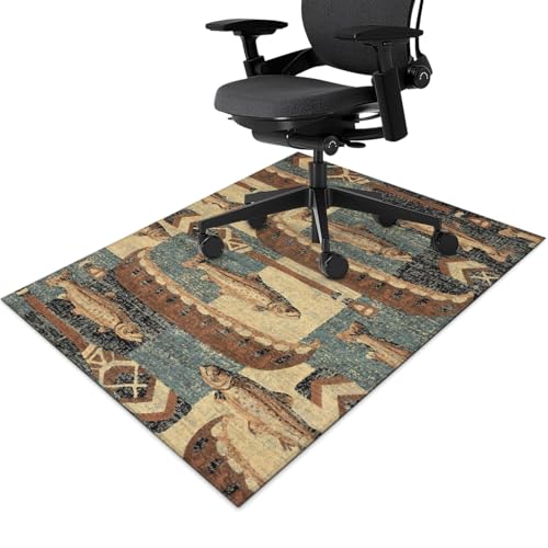 Office Chair Mat for Hardwood & Tile Floor 36"x48",Rustic Buffalo Fish Computer Chair Protector Mat for Rolling Chairs Carpet,Southwest Western Aztec Under Desk Non Slip Rubber Backing Gaming Rug
