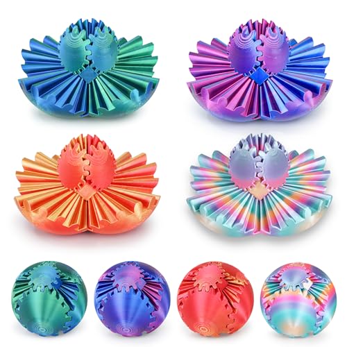 4Pcs Gear Ball 3D Printed Cube Fidget Toy,Gear Sphere Fidget Toys,Sensory Toys for Stress and Anxiety Relief, Desk Toy Fidget Spinners,Stocking Stuffers for Adults & Kids Gift (Multicolor Set-4pcs)