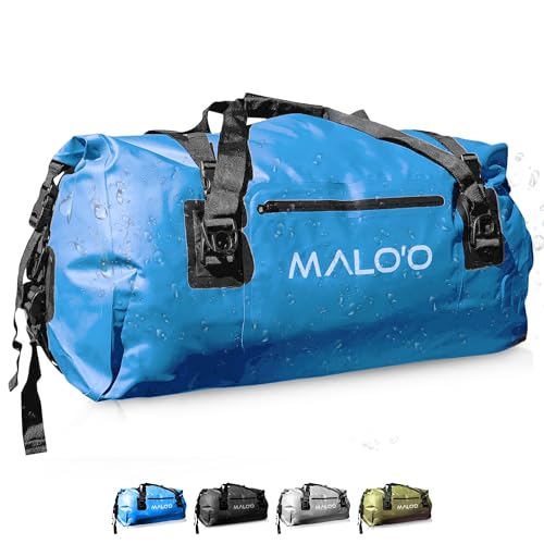 Malo’o Waterproof Dry Duffel, Heavy-Duty Roll Top Waterproof Gear Bag with Shoulder Strap & Molle Loops, Marine Duffel for Kayaking, Boating, Camping, Beach & Travel, Blue, 60L
