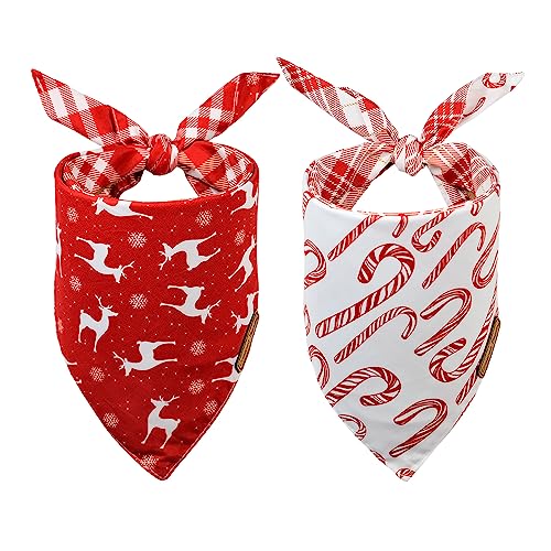 CROWNED BEAUTY Christmas Dog Bandanas 2 Pack, Deer Set, Adjustable Triangle Holiday Plaid Reversible Scarves for Medium Large Extra Large Dogs Pets DB04-L