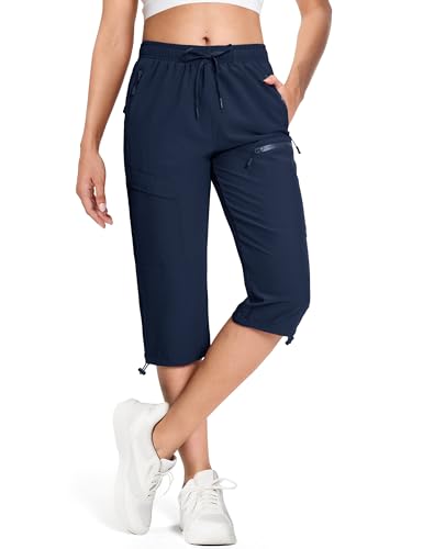 MAGCOMSEN Capri Pants for Women Casual Summer Lightweight Golf Capris Navy Blue Stretch SPF 50+ Travel Hiking Pants, 2XL
