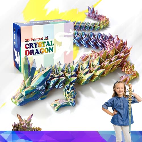 HyBaiS 30 Inch Large 3D Printed Crystal Dragon Toy,Dragon Figurine Large Toy for Kids