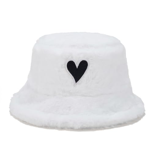 Quanhaigou Winter Faux Fur Bucket Hat,Fuzzy Warm Hat for Women Men, Fluffy Fisherman Cap (Love White)