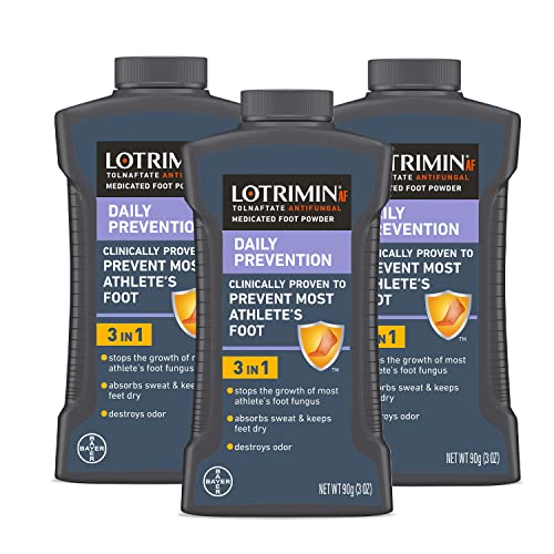 Lotrimin AF Athlete's Foot Daily Prevention Medicated Foot Powder, Tolnaftate Antifungal, Clinically Proven Prevention of Most Athlete's Foot, 3 Ounce (90 Grams) Bottle (Pack of 3)