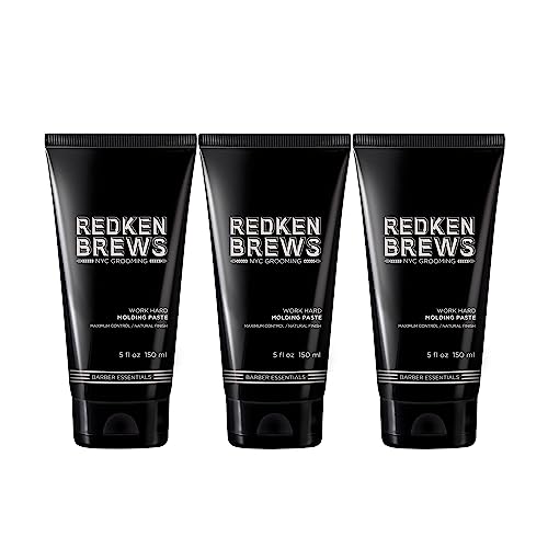 Redken Brews Molding Paste For Men For all Hair Types - High Hold & Maximum Control, Natural and Matte Finish, Sulfate-Free, 5 Fl Oz (Pack of 3)