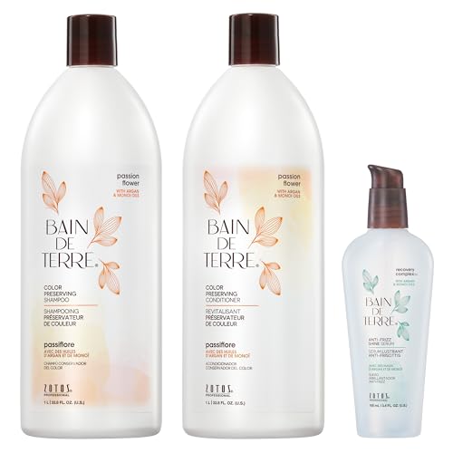 Bain de Terre Color Preserving Shampoo and Conditioner Set & Shine Serum | Passion Flower | Protects & Maintains Color-Treated Hair | Paraben Free | Color-Safe | 33.8 Fl Oz