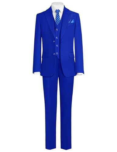 Happy Dolphin Boys Suits Royal Blue Slim Fit Size 4 Formal Suits for Kids Toddler Tuxedos Dresswear Ring Bearer Outfit Boys' Wedding Suits Set Dress Clothes Teen Youth 5-Piece Adjustable Waist