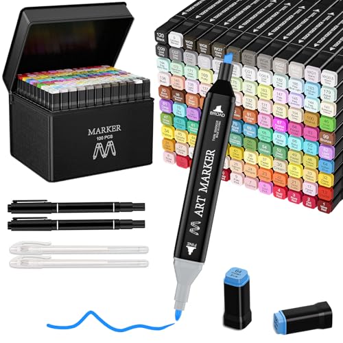Spriak Alcohol Markers Set, 100 Colors Dual Tip Markers for Adult Coloring Books, Art Marker for Kids Adults Sketch Drawing, Marker Set with stand and Carry Case
