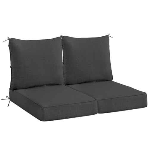 Sundale Outdoor Olefin Deep Seat Cushion Set of 2, Patio Chair Cushion and Pillow, Water-Resistant Sectional Sofa Pad with Straps Dark Gray, 24 x 24 x 4 Inches