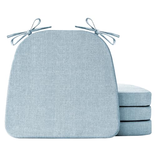IASEAHK Chair Cushions for Dining Chairs Set of 4, Non Slip Kitchen Chair Pads, 17" x 16" x 2", Indoor Dining Chair Cushions with Ties, D-Shaped Seat Cushions for Kitchen Chairs, Light Blue