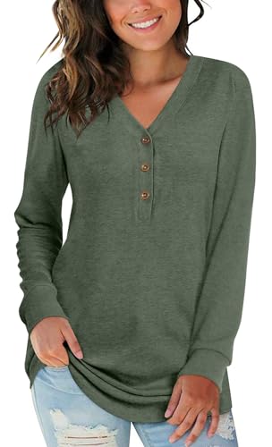 Aodemo Womens Plus Size Fall Long Sleeve Tunic Tops V Neck Henley Shirts Loose Fit Blouses Winter Sweaters XL, Olive Green