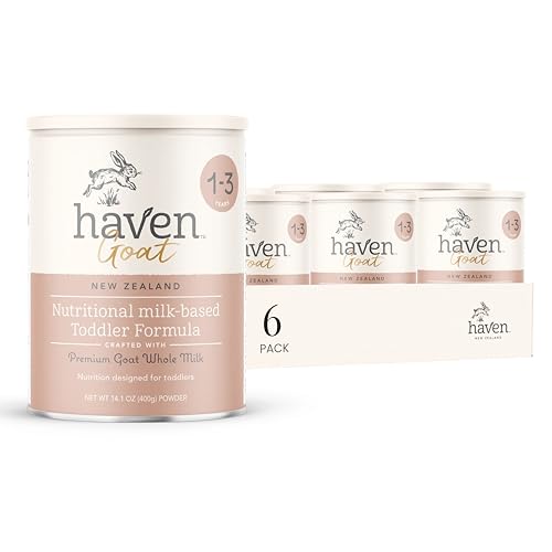 Haven Goat Toddler Formula, Grass Fed Whole Goat Milk Powder for Toddlers With Probiotics, Prebiotics, Lutein and Omega 3 Dha, Easy Digestion Formula, Non GMO, American Made, 14.1 Oz (6 Pack)
