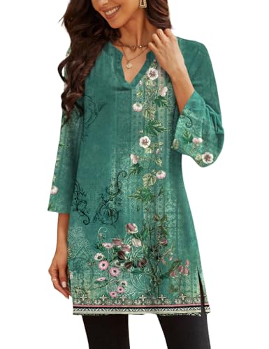 Poetsky Business Casual Tops 2025 Fashion 3/4 Bell Sleeve Blouse V-Neck Floral Fall Tunic Shirts Womens Professional Work Clothes Lady Blouses S