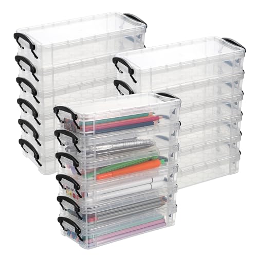 BTSKY 18 Pack Large Capacity Pencil Box, Plastic Pencil Case Crayon Box Bulk, Clear Marker Organizer Stackable Brush Painting Pencils Storage Box for Watercolor Pen Container Drawing Tools(Black)