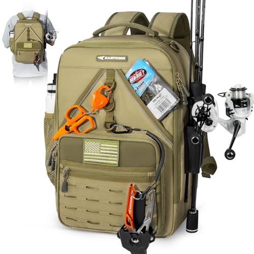 KastKing KarryAll KastMate Fishing Tackle Backpack,Water-Resistant Tackle Bag With 2 Rod Holders,Fishing Gear and Equipment With Large Gear Storage,Khaki