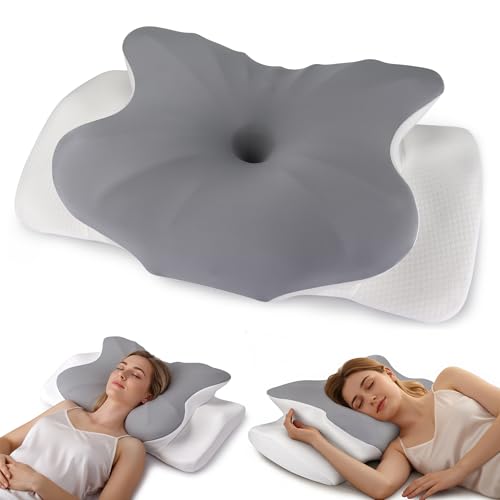 FGNTWP Cervical Neck Pillow, Ergonomic Side Sleeper Pillow for Pain Relief, Cooling Pillow for Sleeping, Neck and Shoulder, Contour Orthopedic Memory Foam Pillows for Back Stomach Sleepers Grey White