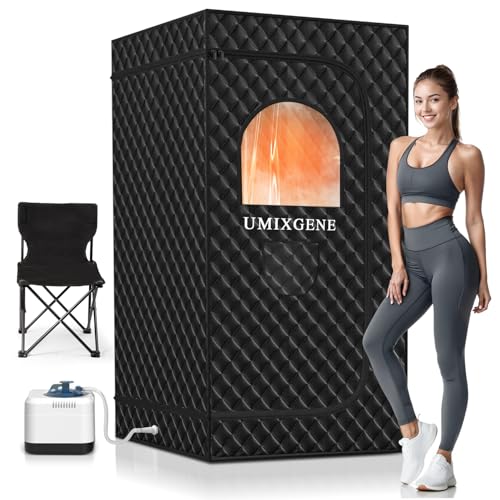 UMIXGENE Sauna Box, Portable Sauna for Home use with Ten Aluminium foil Heating Blankets,Personal Steam Saunas with 3L Steamer, 9 Levels, Folding Chair,Extra Large Size (36 * 36 * 71inch)
