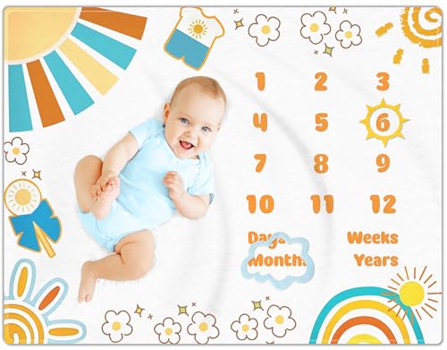 Warmther Baby Monthly Milestone Blanket for Baby Boy Girl, Here Comes The Son Personalized Baby Milestone Blanket Growth Chart Photoshoot Props, 40" X 50"