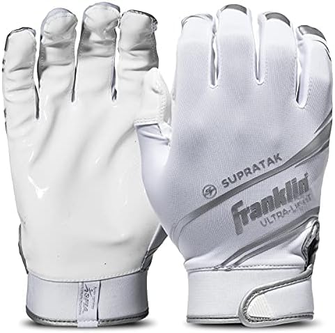 Franklin Sports Supratak Football Receiver Gloves - White/Chrome - Adult Small (Pack of 6)