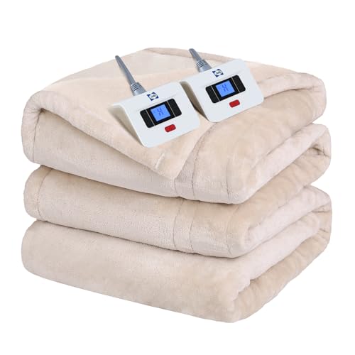 Sealy Electric Blanket Queen Size, Flannel Heated Blanket with 10 Heating Levels & 1-12 Hours Auto Shut Off, Fast Heating Warm Blanket, Machine Washable, Beige, 84 x 90 Inch