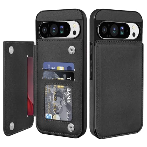 Bizzib for Google Pixel 10 Pro XL Case Leather Wallet with Card Holder, Flip Cover Kickstand Magnetic Closure Shockproof Heavy Duty Protective Case for Google Pixel 10 Pro XL,Black