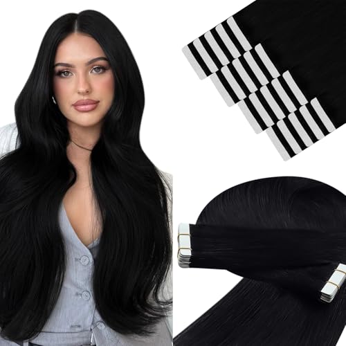 YoungSee Invisible Tape in Hair Extensions Black Tape in Extensions Real Human Hair Jet Black 22 Inch Tapes on Hair Extension 20pcs 50g Real Human Hair Extension Tape-in Long-Lasting Hold Hair