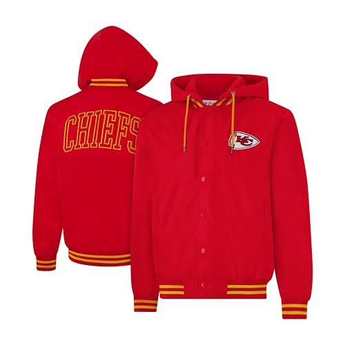 Ultra Game Adults NFL Official Hooded Bomber Satin Jacket, Kansas City Chiefs, Team Color, Medium