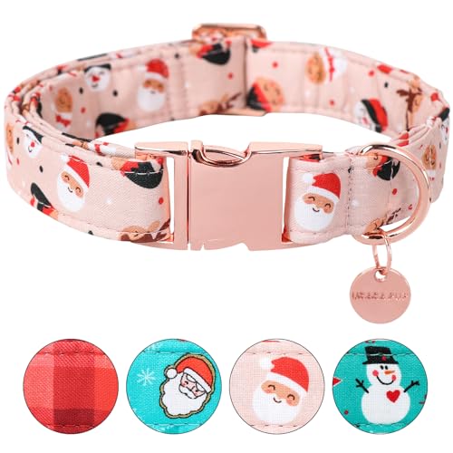 UP URARA PUP Christmas Dog Collar, Cotton Collar for Puppy Girl Boy Dog or Cat, Comfortable Dog Collar with Durable Metal Buckle, Adorable Pet Collar, M