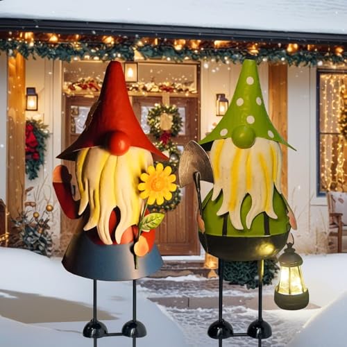 HONGLAND Solar Garden Gnomes Outdoor Statue -18 Inch Gnomes Decorations for Outside with Solar Lantern -3D Outdoor Figurines for Patio Yard Lawn Porch