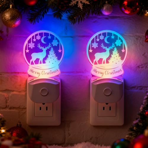 Lasumora Christmas Night Light for Kids[2 Pack], Santa’s Reindeer Plug-in Wall Light with RGB & Color Changing & Soft White 3000K LEDs, Dusk to Dawn, Christmas Decorations Gifts for Bedroom, Hallway