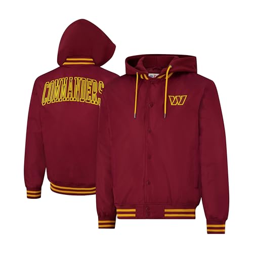 Ultra Game Adults NFL Official Hooded Bomber Satin Jacket, Washington Commanders, Team Color, Medium