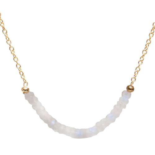 Gempires Moonstone Gemstone Beaded Necklace June Birthstone Handmade Jewelry Hypoallergenic 18 Inch Gold Plated New Beginnings Necklaces For Women