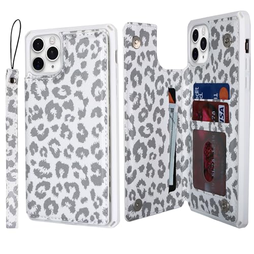 Cavor for iPhone 11 Pro Max Cases Wallet with Card Holder for Women Men,Phone Case for iPhone 11 Pro Max Case with Stand and Strap,Shockproof Protective Cover-White