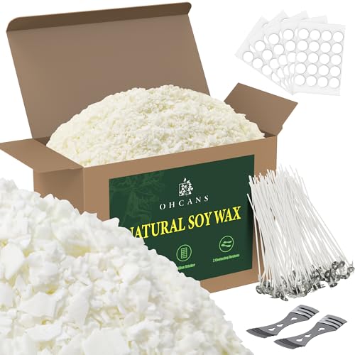 Ohcans Soy Candle Wax for Candle Making, 5 lbs Natural Soy Candle Flakes, Premium Soy Wax for Candle Making, Candle Making Supplies,100 Cotton Candle Wicks, 100 Wick Stickers, & 2 Wicks Holder