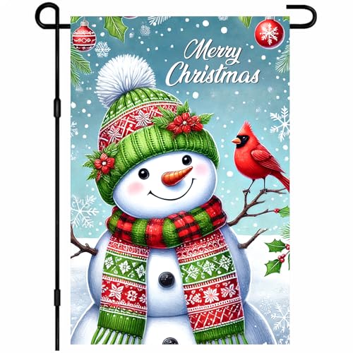 BlissYard Christmas Garden Flag 12x18 Inch Snowman Cardinal Flag Double Sided Winter Holiday Yard Banner Festive Snowflake Outdoor Decor for Porch Lawn Christmas Display
