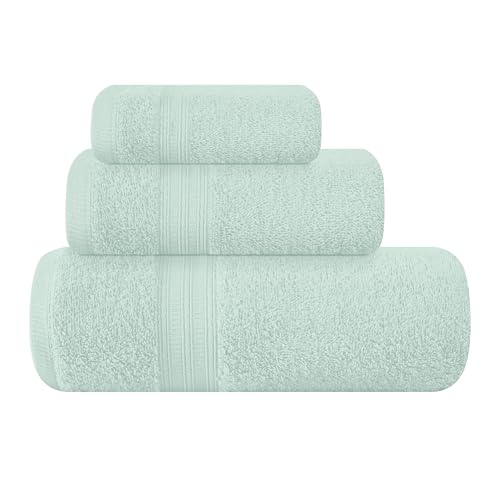 BOUTIQUO Ultra Soft 3 Pack Cotton Towel Set, Contains a Bath Towels 27x54 inch, a Hand Towels 16x24 inch & a Wash Coths 12x12 inch, Ideal Everyday use, Compact & Lightweight - Sea Green