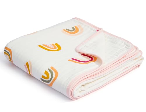 ZPECC Muslin Baby Blanket Thicker, 30x40 Organic Cotton Newborn Receiving Quilt Hypoallergenic for Baby Essentials Swaddle Crib Stroller, Rainbow