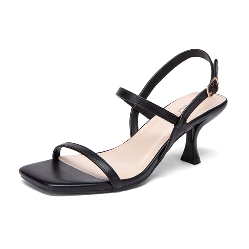 Gorfen Black Strappy Kitten Heels for Women Square Open Toe Low Heel Sandals Elegant Wedding Party Summer Dressy Sandal Wedding Party Shoes