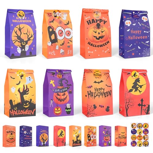 32pcs Trick or Treat Bags - Halloween Candy Bags with Stickers, Fun & Spooky Designs for School Events & Parties