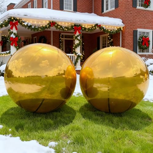Gold Inflatable Mirror Ball, Big Shinny Mirror Balls Reusable Large PVC Disco Ball Balloon for Large Event Decoration, Party, Concerts, Stage, Wedding Decor, Without Air Pump(2 Pcs, 31.5in)