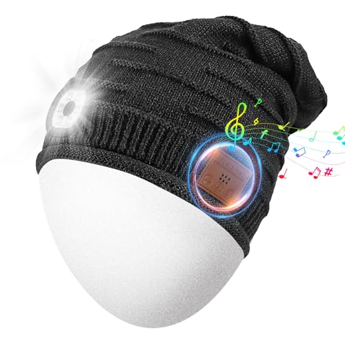 Rotibox Bluetooth Beanie Hat with Light, Music Knit Hat with Headphones for Outdoor Sports,Gifts for Birthday, Christmas, Mens Stocking Stuffers for Men, Women, Teens